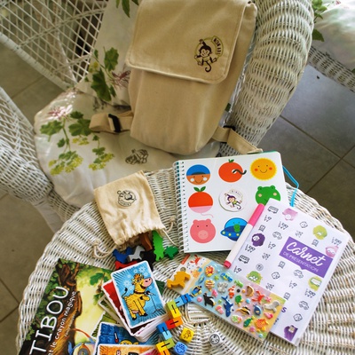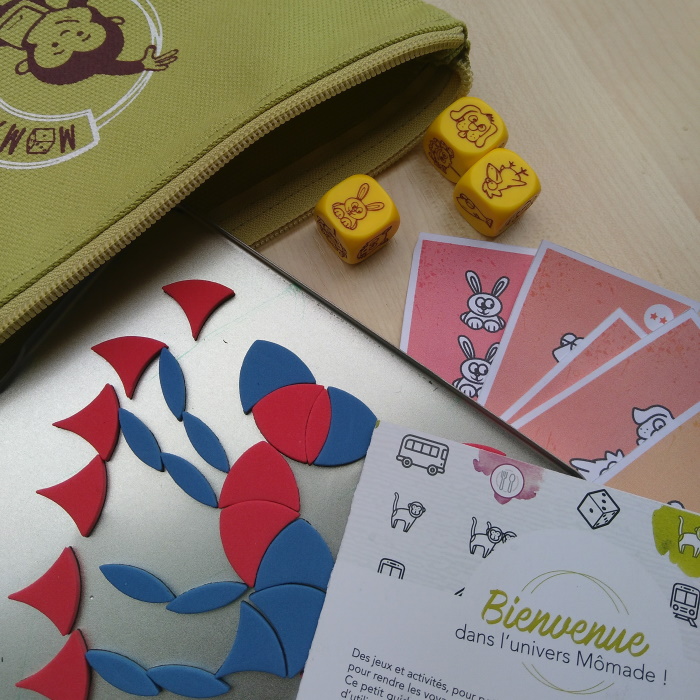 J’ai commandé le sac à dos 6-8 ans pour partir au ski avec mes 3 enfants de 5, 6 et 8 ans. Ils ont beaucoup aimé le jeu de cartes poules-renards-vipères, les aimants que l’on combine à l’infini (et qui ne tombent jamais par terre) et la variété des jeux en général. Pour une semaine de vacances, je n’ai emporté aucun autre jeu que le sac Mômade.