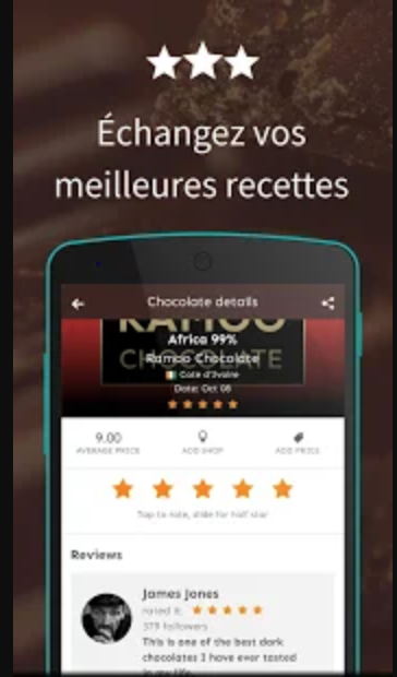 - Possibilité de scanner un chocolat et d’obtenir immédiatement des notes et des avis