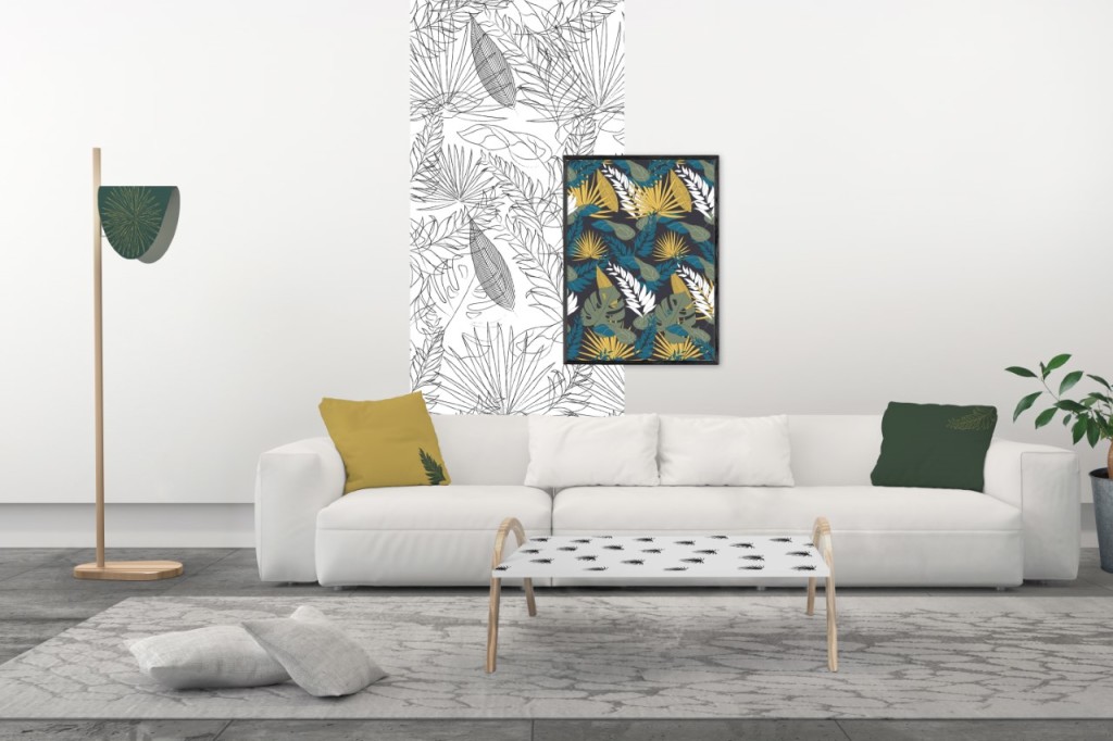 Un lé de papier peint sur les murs de votre salon et c’est tout ! Finie l’époque où l’on couvrait entièrement les murs d’une pièce de papier peint. Aujourd’hui on utilise le lé comme un tableau. Si vous appréciez les motifs graphiques, vous apprécierez notre papier peint Losan Graphic.