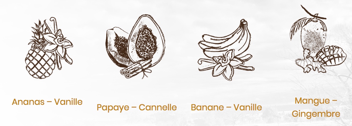 L’assemblage n°1 trouvera son public chez les amateurs de saveurs variés Inédit dans le monde des rhums arrangés, surprenant et déroutant, ce rhum marie l’assemblage précis des quatre rhums arrangés de la gamme bio équitable (ananas-vanille / papaye-cannelle / banane-vanille / mangue-gingembre).