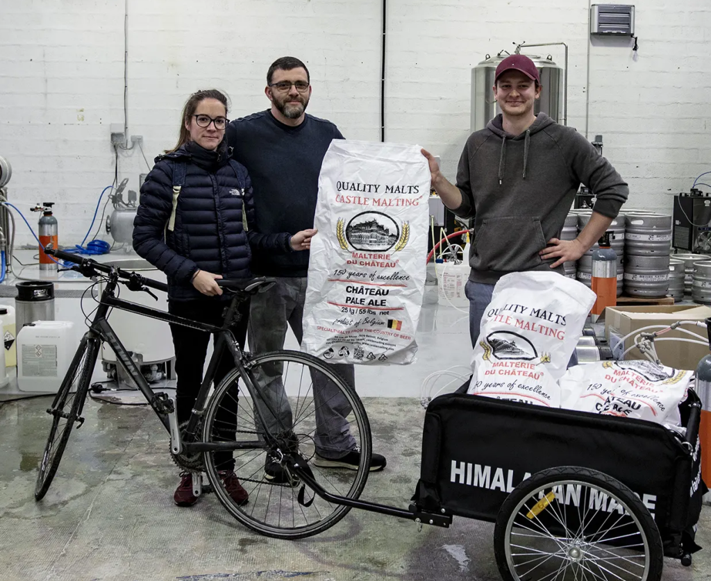 Himalayan Made organise ainsi des ramassages en vélo toutes les deux semaines de sacs de riz, malt etc… auprès de plusieurs établissements lyonnais. Ces sacs de grande contenance sont solides, légers, propres, et réutilisables.