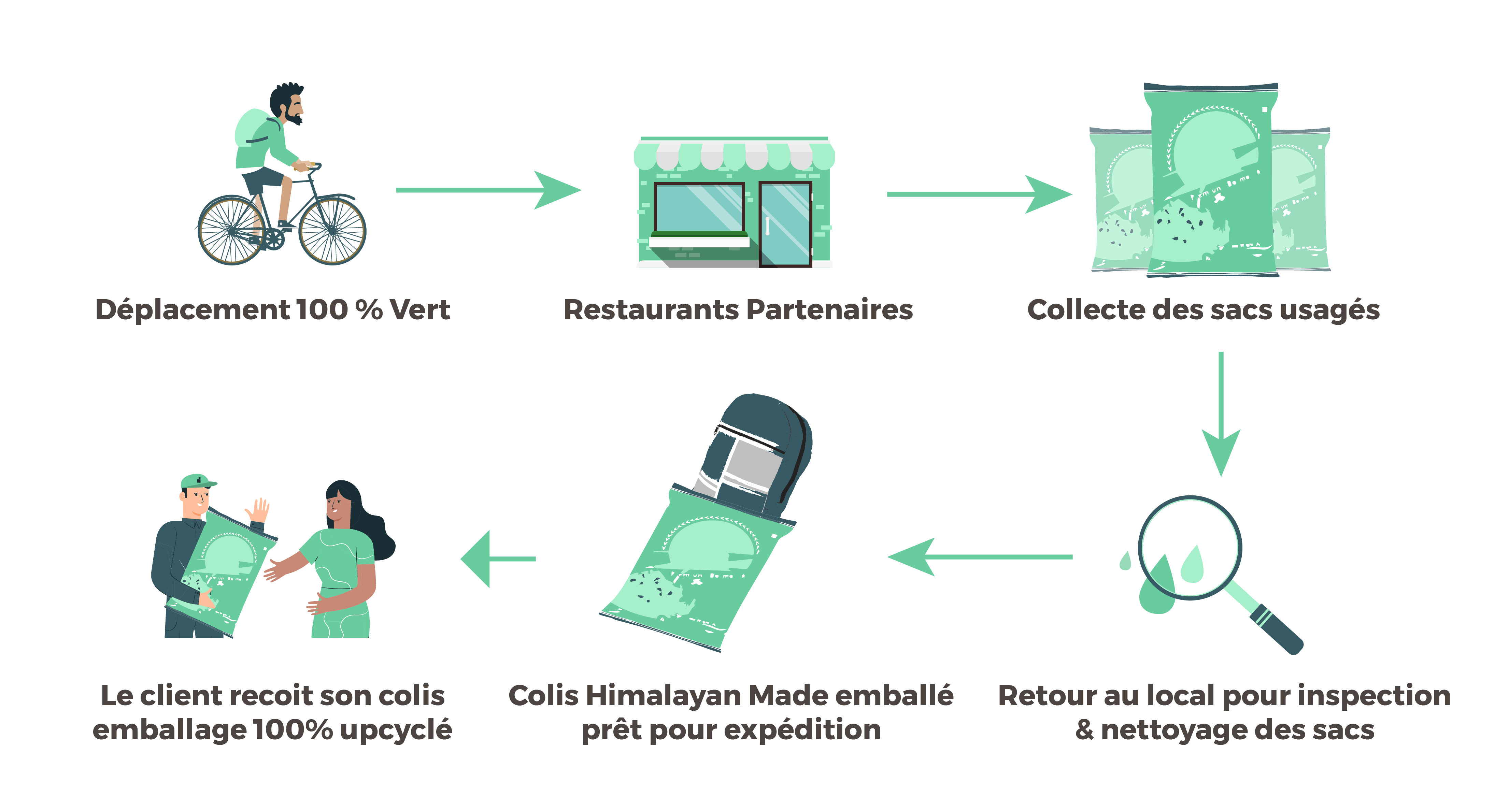 Himalayan Made propose des sacs & accessoires en chanvre bio, désormais livrés dans des emballages Upcyclés, collectés à vélo auprès de plusieurs restaurateurs lyonnais.