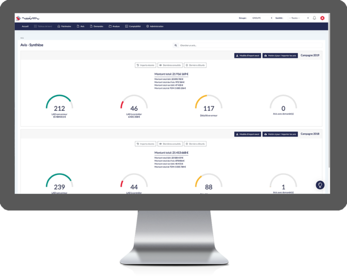 Le logiciel vérifie automatiquement à chaque campagne la cohérence entre le patrimoine sous gestion et l’imposition reçue. La solution WIM permet ainsi de piloter l’avancement des demandes de dégrèvement auprès de l’administration fiscale.