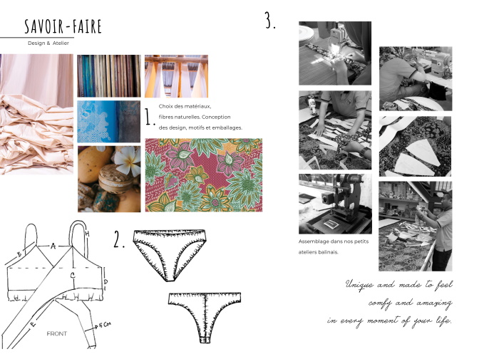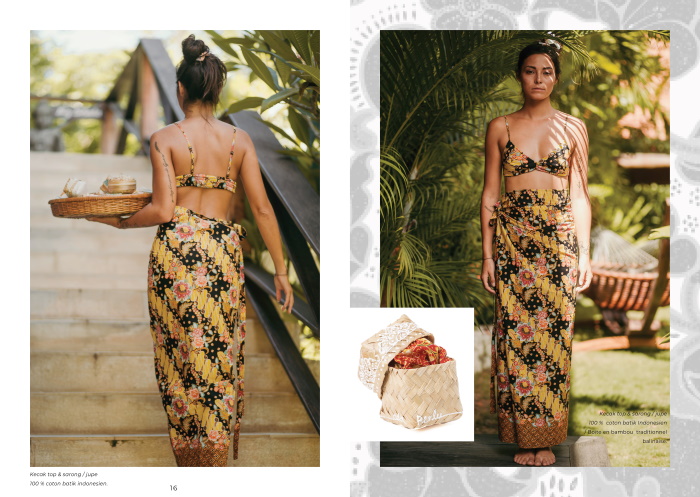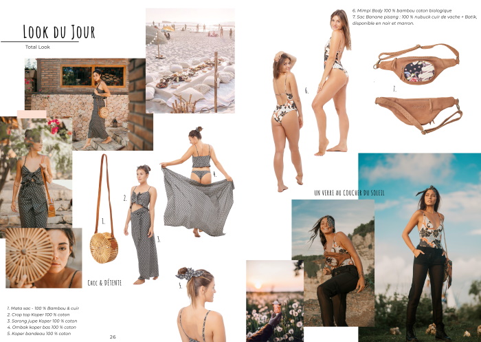 Dans une démarche éthique, Marine et Cyrielle créent leurs designs et imprimés en France, pour que chaque pièce soit unique puis les confectionne à la main à Bali dans des ateliers locaux respectant les conditions de travail de leurs employés et menant des actions pour la planète, comme contribuer à planter des arbres à Citarum River à Bandung en Indonésie.