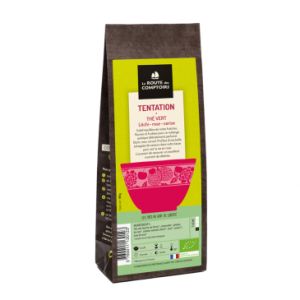 Ingrédients : Thé vert Sencha de Chine*, citronnelle*, pétales de roses*, arômes naturels (litchi*, rose*, cerise*), baies roses*
