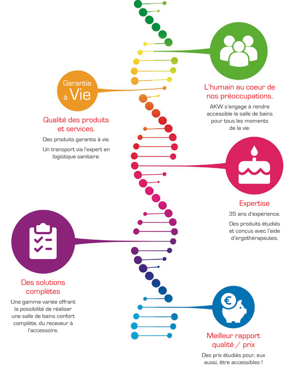 AKW place l’humain au centre de ses préoccupations. Son activité touche à un domaine sensible : celui du handicap, de la vieillesse et de la perte d’autonomie. La société met donc un point d’honneur à fournir des produits irréprochables techniquement, qui répondent aux besoins de l’utilisateur, mais aussi à ses envies.