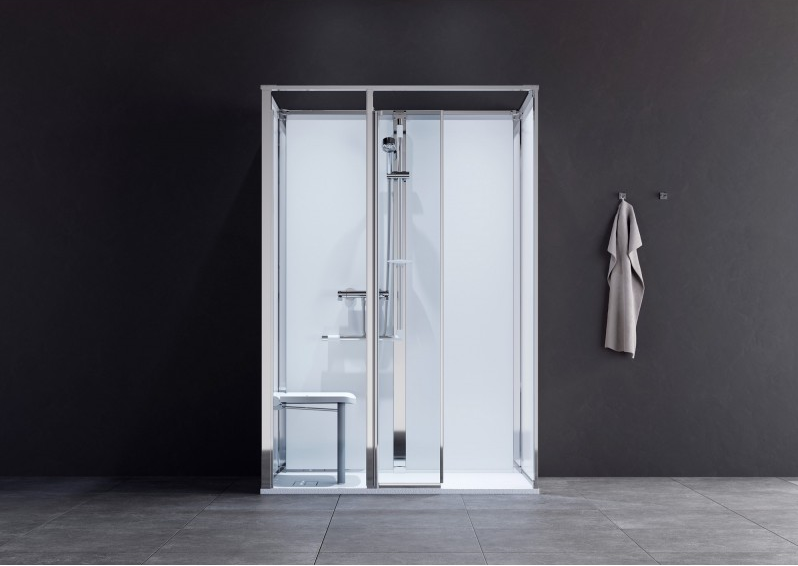 Cet espace douche bat également tous les records de rapidité et de facilité d’installation grâce à sa structure prémontée : il s’installe ainsi en deux heures à peine. Confortable, l’espace de douche est doté d’un receveur extra-plat antidérapant PN24 et de portes à accès facile. Il est compatible avec tous les sièges de douche et barres d’appui : il s’adapte ainsi aux besoins de chacun et convient à tous.