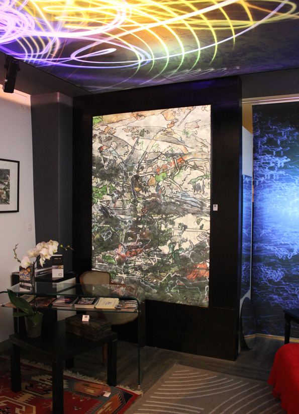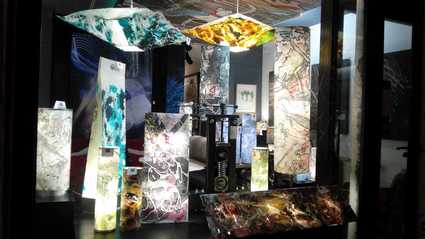 Au-delà des lampes et des tableaux, Isabelle crée également des projets sur mesure plus important comme les cloisons ou les plafonds lumineux.