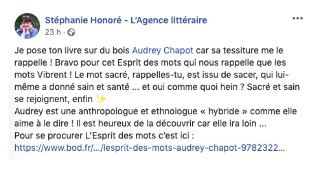 Dans son livre “L’Esprit des mots”, l’anthropologue hybride Audrey Chapot mêle anecdotes personnelles et réflexions anthropologiques pour décrypter, interpeller et mettre en perspective ce que les mots montrent de notre civilisation et de notre époque, à notre insu.
