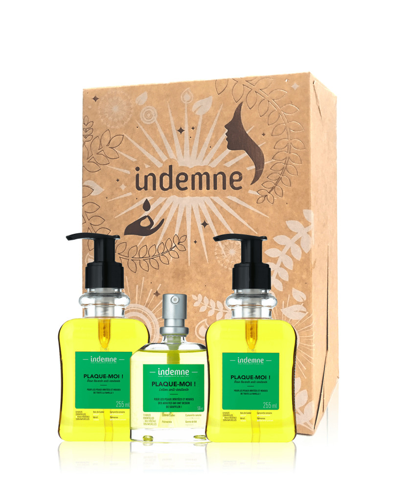 Indemne propose une gamme spécialisée dans le soin des peaux sensibles, fragiles, sèches, très sèches, irritées et abîmées, jusqu’à l’atopie. La marque a pris le parti de dédramatiser les peaux à problèmes en choisissant pour ses produits des noms décalés qui donnent envie de les utiliser.