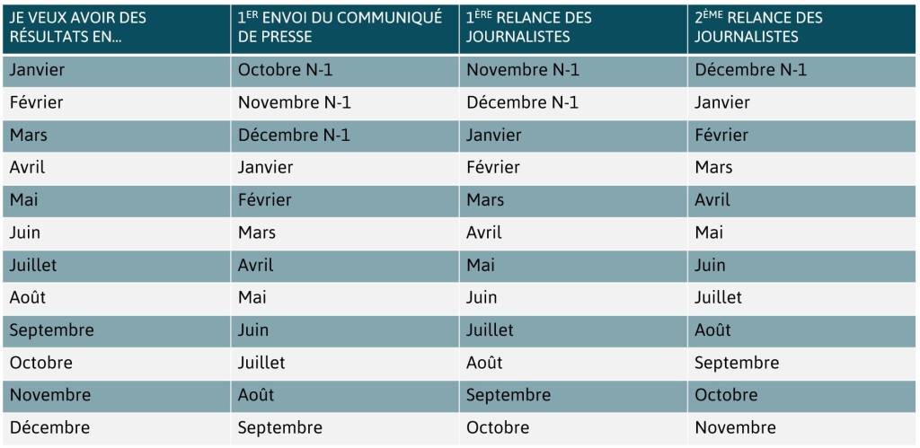 Tous les médias n’ont pas les mêmes délais de bouclage. Comme expliqué en introduction, il faut contacter les magazines 2 à 3 mois à l’avance, parfois plus selon les titres visés.
