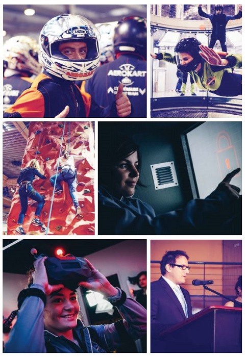 Vibrer en défiant ses collègues sur une des plus grandes pistes de Karting indoor d’Ile-de-France, vivre des émotions plus vraies que nature et devenir le héros d’un jeu en réalité virtuelle sur 100 m² d’espace avec une technologie unique en France, participer en équipe à un des plus grands jeux d’aventure et d’évasion en région parisienne (le Winscape), prendre son envol pour 2 minutes de chute libre indoor dans une veine d’air soufflant des vents jusqu’à 280 km/h…