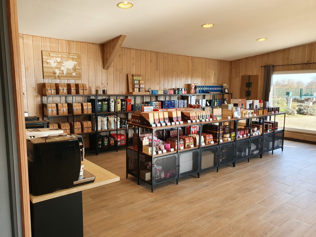 Sont également proposés des cafés d’autres marques, des capsules, des dosettes, du chocolat en poudre, du thé en sachet et en vrac, et des gourmandises comme les spéculoos, amandes cacaotées, et tablettes de chocolat. Il est aussi possible d’acheter des machines à café.