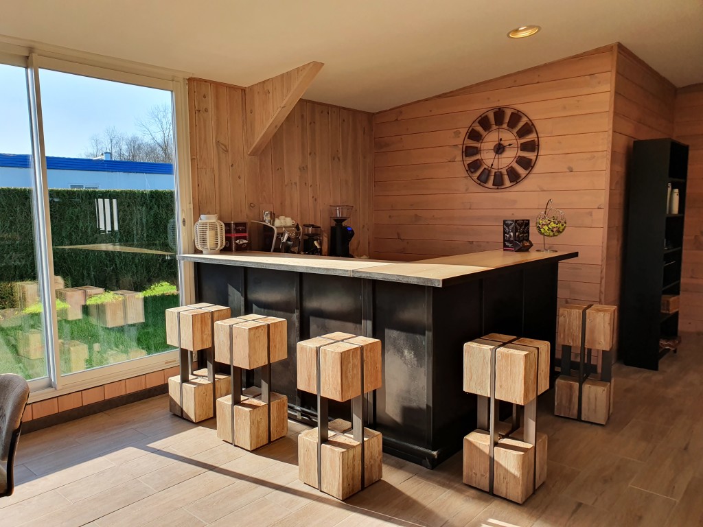 Lumineux et chaleureux, Au bon kawa est divisé en deux espaces. D’un côté, il y a la boutique, dans laquelle on retrouve les produits de la marque Bonkawa, issus de la torréfaction artisanale de Buroespresso. Le café est torréfié sur place.