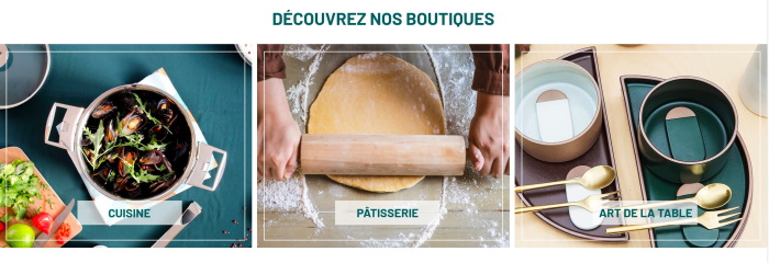 Il propose une large gamme de produits dédiés au « bien manger » et au « bien recevoir » : ustensiles, matériel de cuisson, coutellerie, vaisselle, ingrédients, chocolats de couverture, arômes et colorants. La sélection, pointue et réfléchie, est composée d’essentiels de la cuisine, façonnés avec passion et savoir-faire.