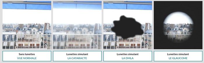 - 3 lunettes simulant la cataracte, le glaucome et la DMLA ;