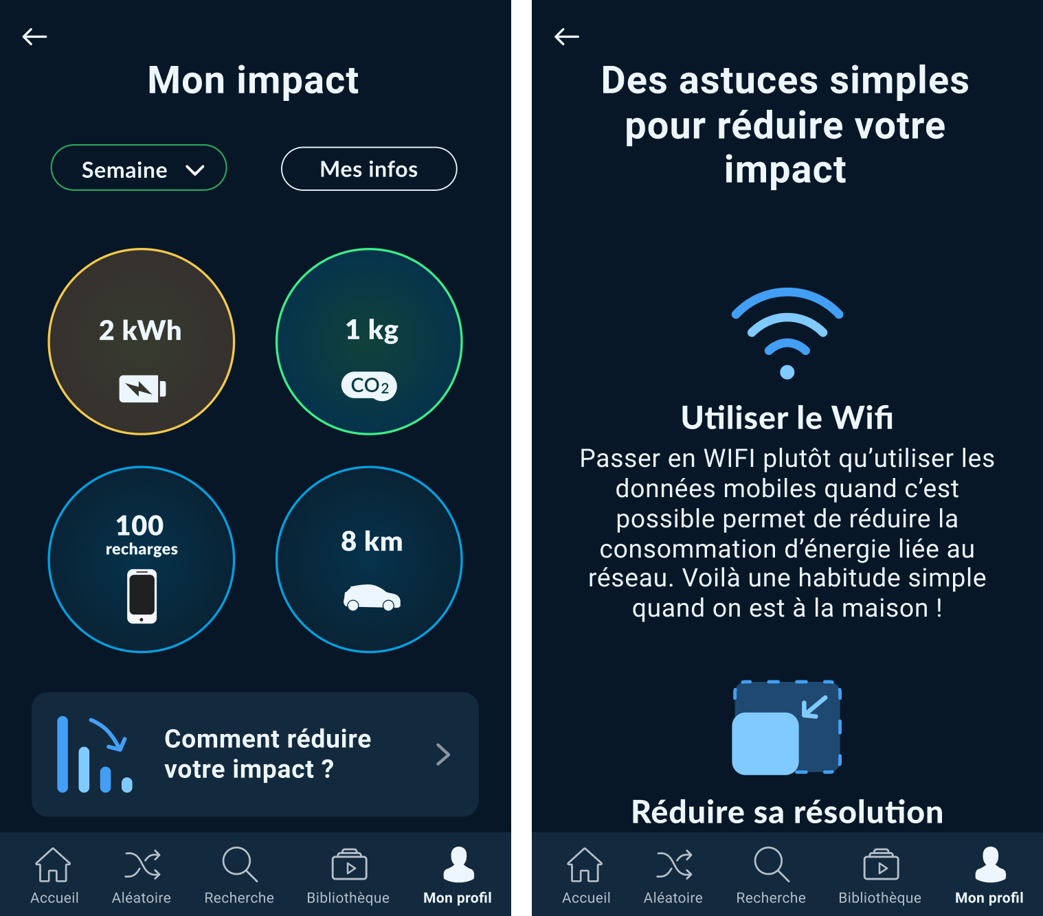 Lancée par une jeune équipe lilloise, cette appli “nouvelle génération” a une dimension pédagogique : elle permet en effet à tous les internautes de comprendre et de suivre leur impact écologique lié au streaming.