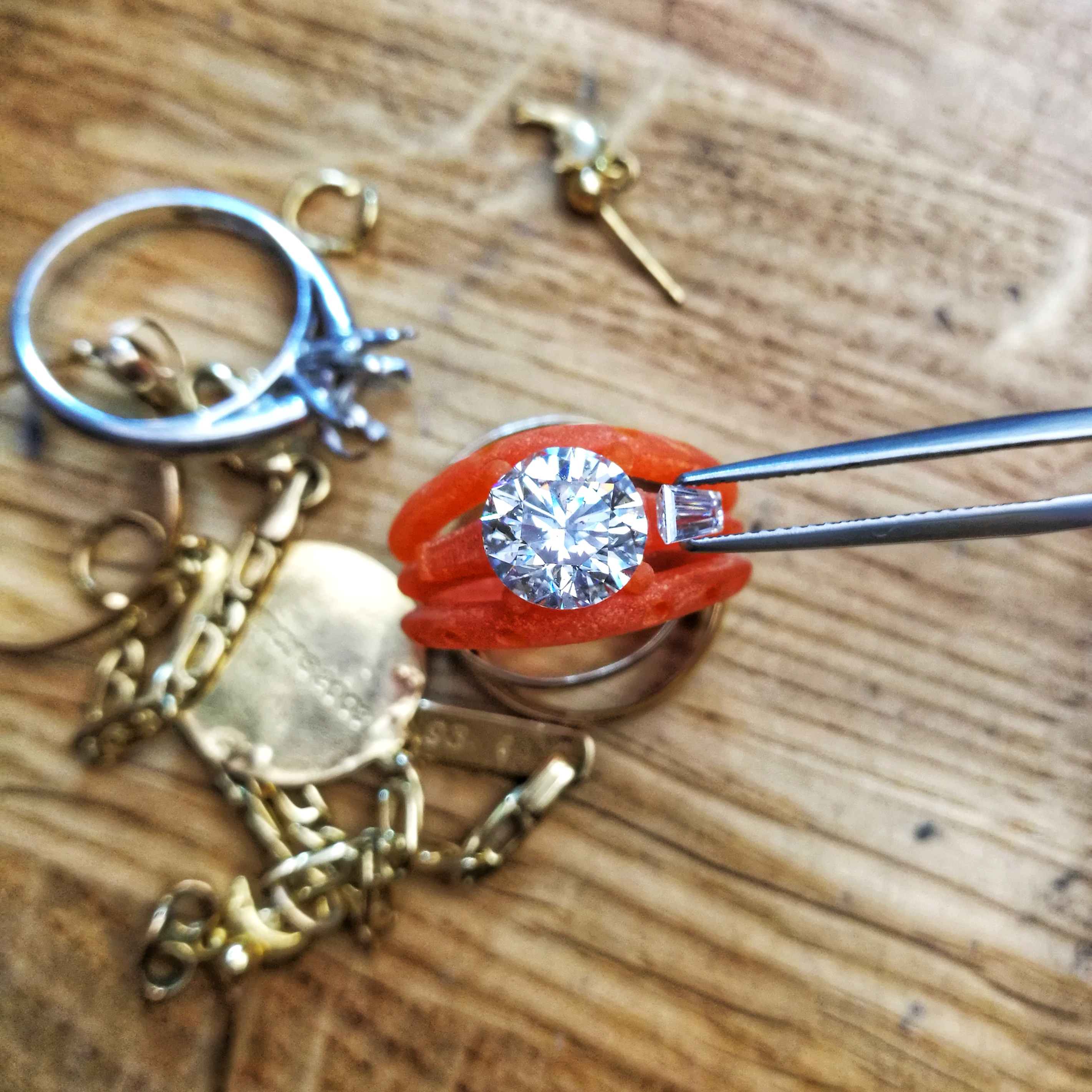 Il y a des pierres de famille provenant d’un héritage, des bijoux cassés, d’autres qui sont anciens ou oubliés… Tous peuvent avoir une nouvelle vie en donnant naissance à un nouveau bijou, plus moderne et conforme aux goûts de chacun.e.s.