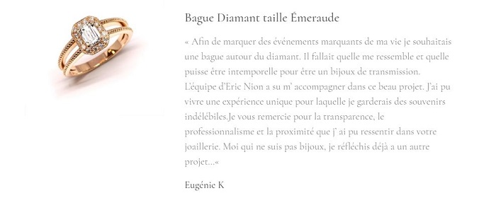 Aujourd’hui, la Joaillerie Eric Nion souhaite développer son service de création de bijoux sur-mesure et développer sa collection de joaillerie en ligne. Une collection de chevalières va d’ailleurs être lancée prochainement (les modèles sont déjà déposés).