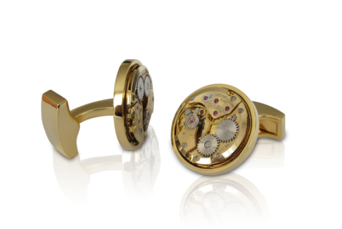 Ces boutons de manchette sont fabriqués en France à partir de mécanismes de montre de la célèbre maison horlogère BAUME & MERCIER.