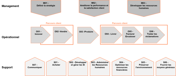 - Des communautés de process, basées sur une représentation de l’entreprise par sa chaîne de valeur, pour innover collectivement, mais aussi booster l’engagement et l’efficacité ;