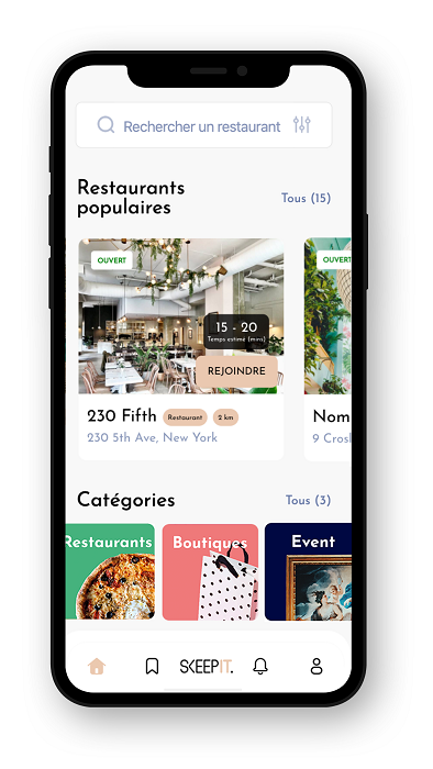 D’où la révolution Skeepit, l’appli qui permet de faire la queue à distance, dans un périmètre proche du restaurant !
