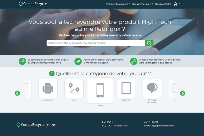 C’est donc tout naturellement que Gaël décide d’agréger ce contenu pour faciliter les comparaisons : le concept CompaRecycle venait de naître ! Il quitte alors Nokia fin 2010 pour lancer le premier comparateur de rachat de produits high tech toutes catégories. C’est le début de l’aventure du marché du recyclage et du reconditionné…