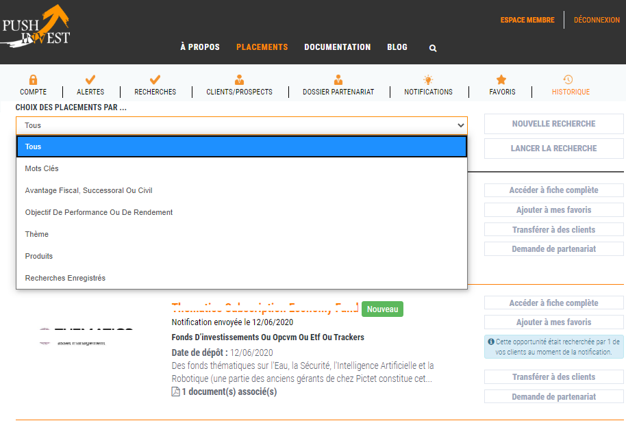 Cependant, les informations fournies par le web en termes de recherche de produits ne sont pas toujours pertinentes ni actualisées. C’est donc pour permettre aux épargnants de trouver des placements adaptés que PUSHINVEST a été créé.