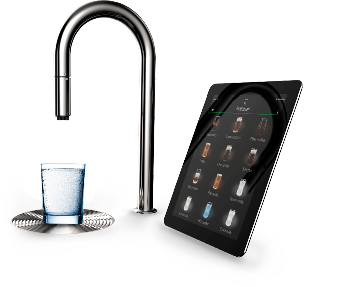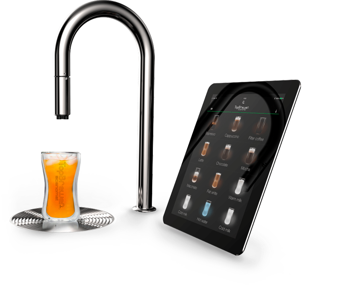 L’élégante machine TopJuicer délivre quant à elle du jus frais à partir d’un robinet élégant, col de cygne, grâce à une application, tandis que l’unité principale est soigneusement cachée sous le plan de travail.