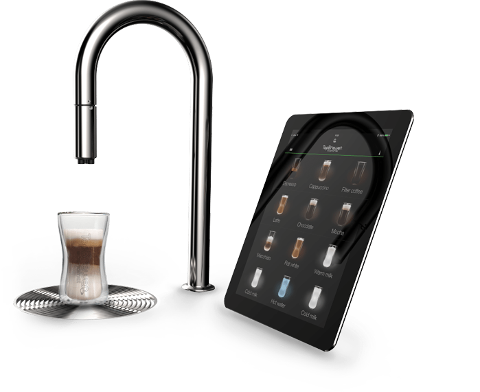 TopBrewer est une machine à café au design raffiné puisqu’elle s’intègre a 99% dans un meuble ; seul un élégant col de cygne en aluminium, laiton ou même en or 24 carats est visible.
