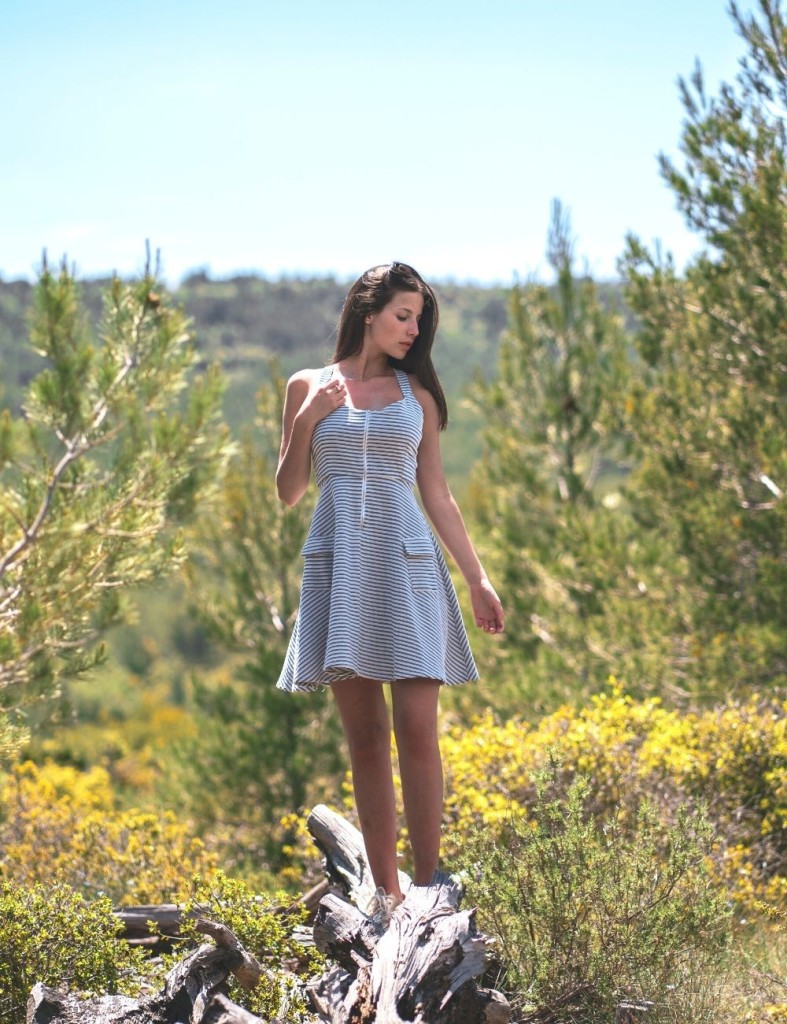 La robe Vicky est la robe d’enfance de la créatrice, discrète mais féminine, facile à porter. Elle dispose d’élégantes bretelles croisées dans le dos, qui lui donnent un look moderne, et de poches sur les côtés qui cassent le côté classique en apportant une touche décontractée.