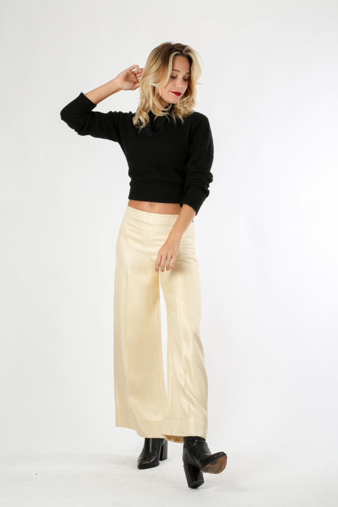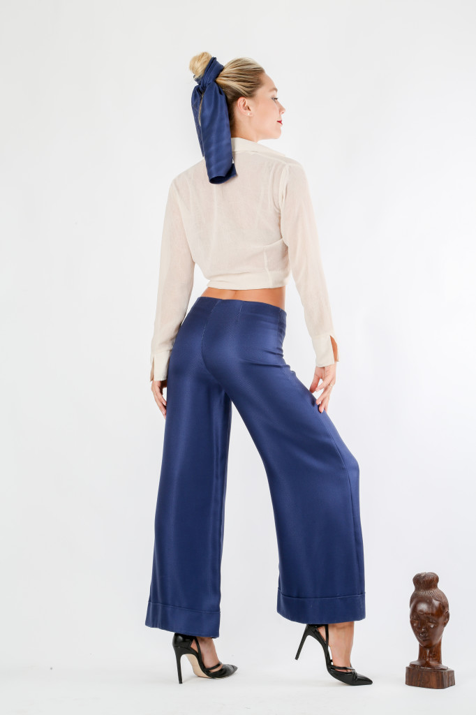 Le Pantalon Revers M en natté 100% soie, fluide, dans la mouvance il danse.
