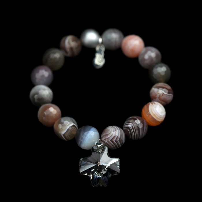 Osasco : Pendentif Croix Swarovski et Perles d’agate facetée du Botswana