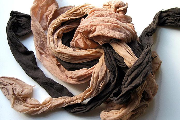 - Le collant est ensuite découpé pour servir d’élastique pour les jolis chouchous de la marque.
