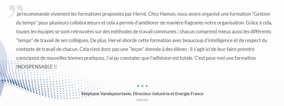 Hervé est également l’auteur de deux livres : « Gestion du temps pour managers débordés », publié aux éditions Gereso en 2016, réédité en 2018, 3ème édition prévue pour oct. 2020, ainsi que « Vivre avec autodétermination – La méthode J.O.I.E pour s’épanouir au travail et en privé », publié en 2019 par la même maison d’édition.