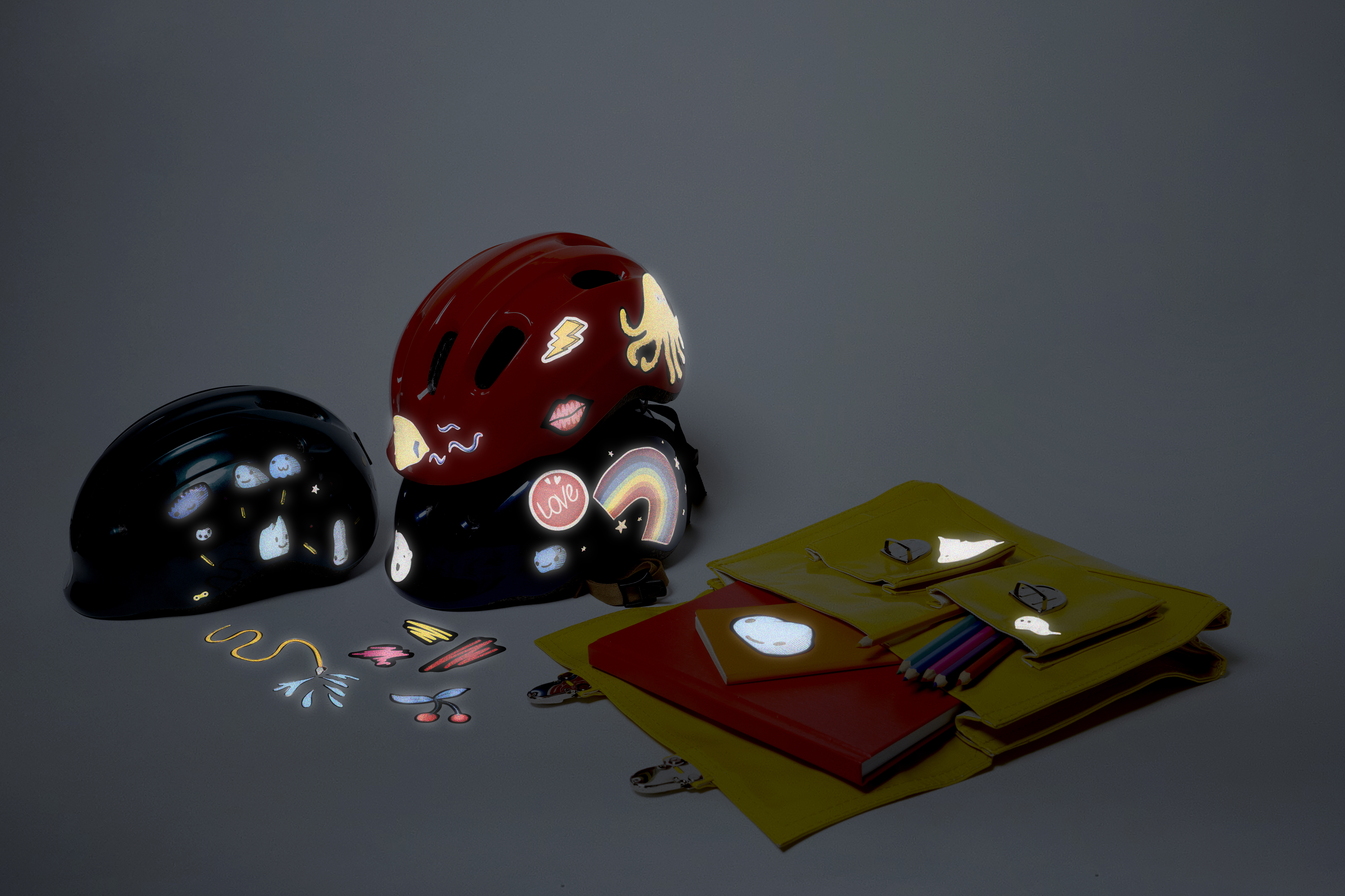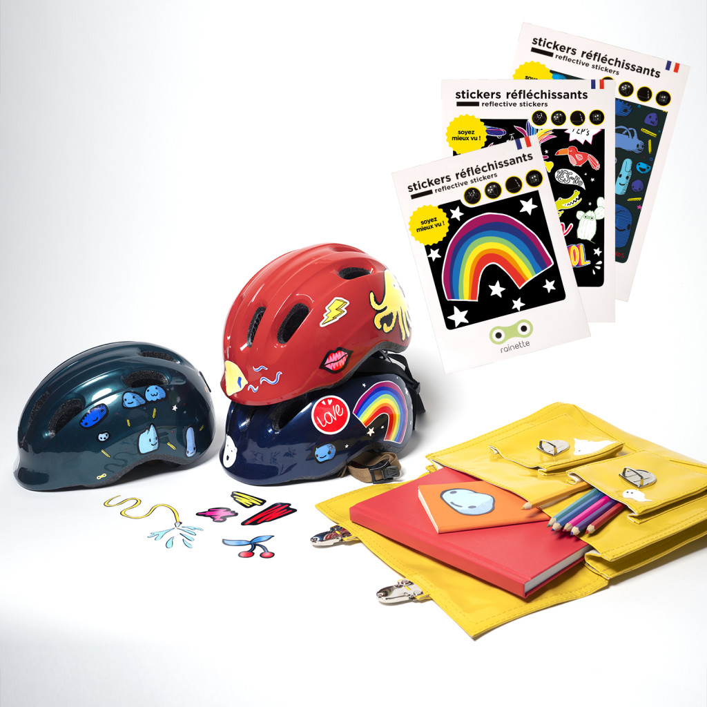 Personnalisez le casque, le vélo le cartable, la trottinette,… de votre enfant … rendez-le unique, et surtout visible !