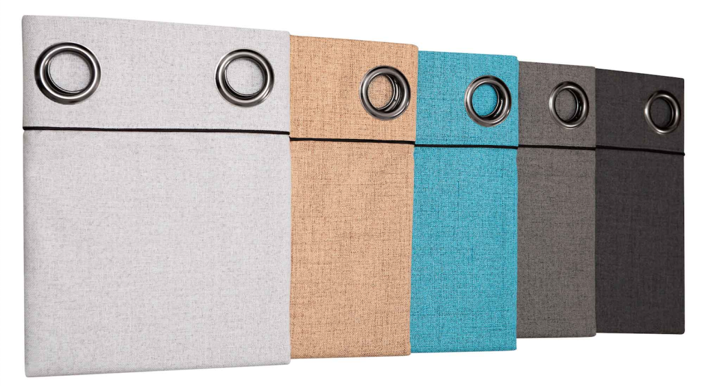 Le rideau Rid’Night (dimensions 135 x 240 cm) s’installe sur une tringle standard. Un mode de fixation en œillets est proposé par défaut. A noter que, sur demande, le mode de fixation sur rails plafond est également possible, notamment pour le secteur de l’hôtellerie. Il est disponible dans différents coloris :