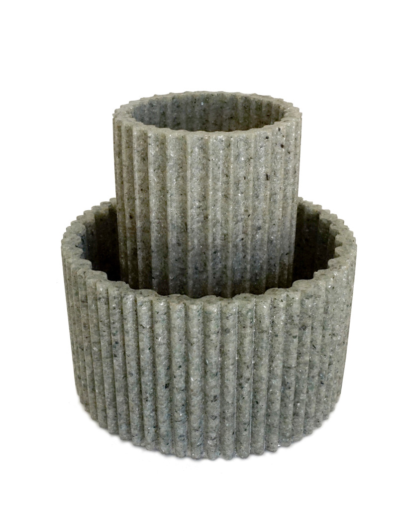 Ce vaste innovant de Valérie Windeck est fait en Wastérial, un matériau recyclé fabriqué dans le nord de la France. Ici, le verre de pare-brise confère à cet élégant vase un aspect vert de gris légèrement scintillant.
