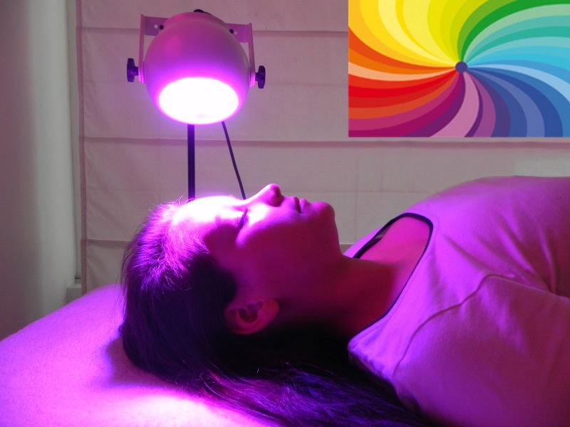 La chromothérapie ou chromathérapie vise à atténuer des symptômes par les couleurs, qui sont projetées sur le corps humain via la lumière.