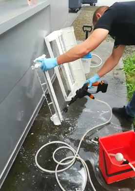 FHV intervient sur tous les types de systèmes de climatisation : climatiseurs, cassettes, évaporateurs, échangeurs, etc. Ses techniciens utilisent une méthode mettant en œuvre la vapeur d’eau sous pression, qui garantit un excellent résultat sans endommager le matériel.