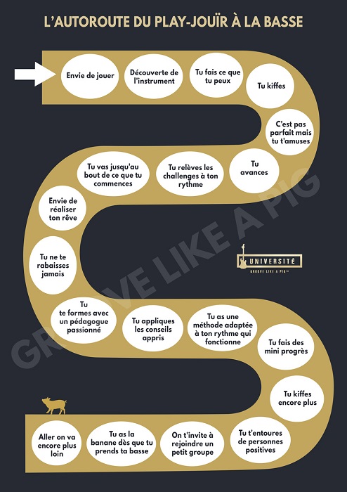GROOVE LIKE A PIG™ est bien plus qu’une Université : c’est avant tout un état d’esprit, une communauté Francophone qui rassemble tous les amateurs de basse motivés pour apprendre la basse de manière ludique et alternative.