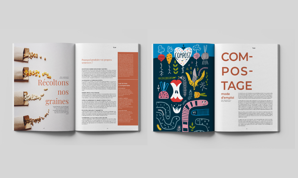 Pour chaque article, Julie et Laetitia vont sélectionner des contributeurs.trices experts du sujet. Dans le Numéro 3 par exemple, les dossiers et articles ont bénéficié de l’expertise de The Frenchie Gardener (néo-jardinier urbain), Alexandra Berrou (maître composteur qui anime des ateliers DIY zéro déchet pour les enfants), Victoria Arias (auteure du livre Green Life), Elisa Routa (journaliste, écrivaine et photographe)…