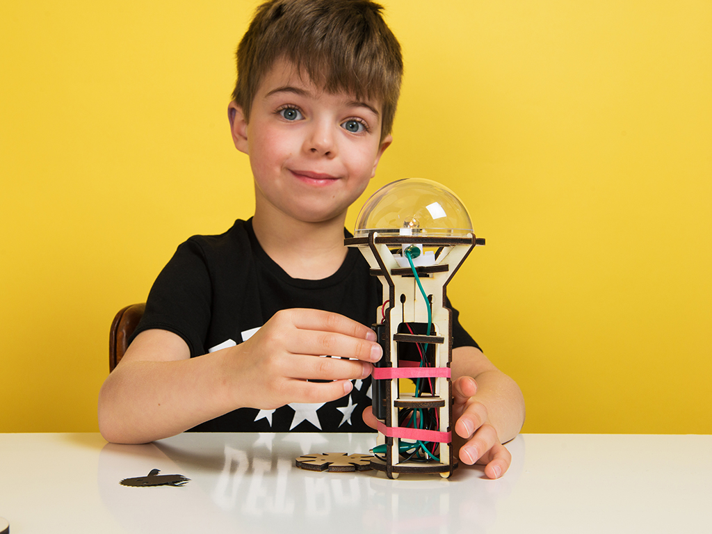 Ce kit permet de fabriquer sa propre lampe torche en assemblant les éléments en bois et les composants électriques. Grace à cette activité, les enfants comprennent le fonctionnement d’un circuit électrique de base et la formation de l’électricité. Placée sur la table de nuit, elle accompagne l’enfant dans toutes ses aventures dans le noir !