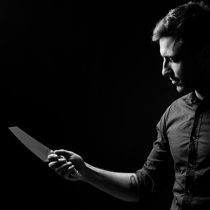 Jeune ébéniste de 28 ans diplômé chez les Compagnons du devoir, coutelier autodidacte, Frederi revisite le concept même de couteau avec sa marque Venturi Coutellerie : les codes et pratiques d’antan, les matières précieuses et animales sont oubliés… place au design et aux matières composites ainsi qu’au bois semi-fossile qui ne peut être travaillé qu’après une mort naturelle !