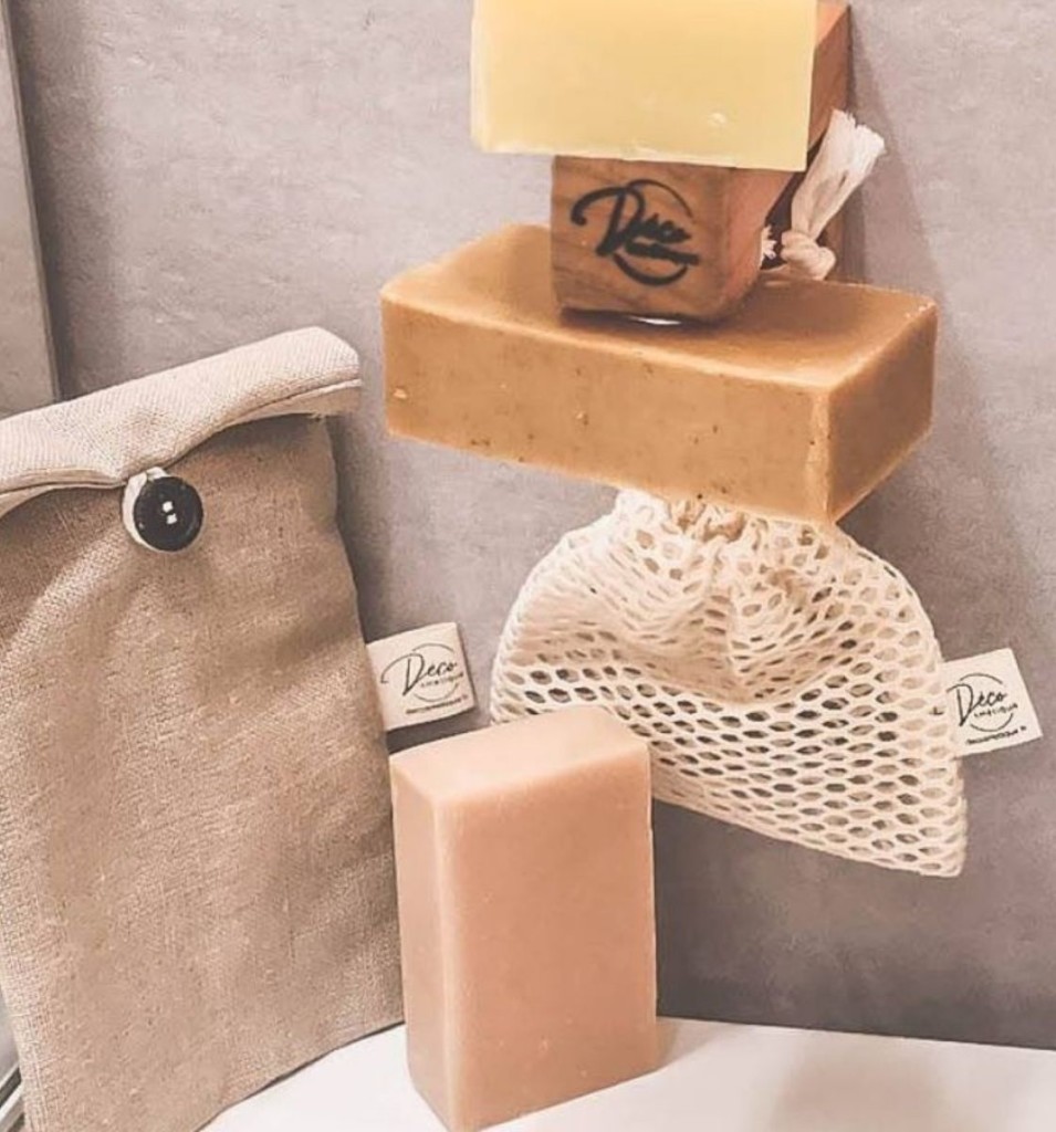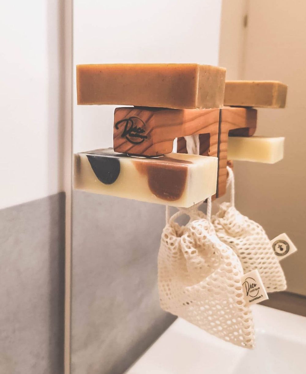 Avec la jeune marque rennaise Déco’smétique, les porte-savons, trousses de toilette et autres accessoires deviennent également plus écolo et raisonnables, tout en prolongeant la vie des cosmétiques solides !