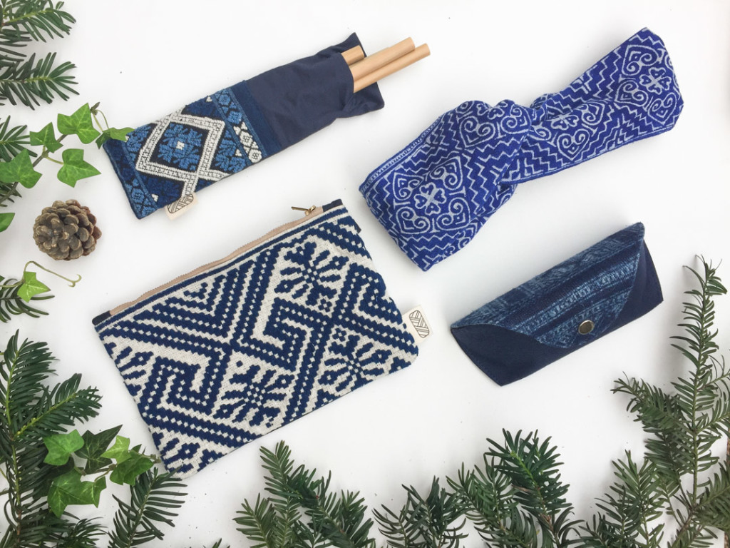 Plusieurs articles éco-responsables sont proposés pour les fêtes de fin d’année, comme le foulard Virachey, l’écharpe Ream, le sac bandoulière upcyclé, la pochette upcyclée, la veste Tai Dam, le kimono Naga ou encore la chemise Khmu pour homme.