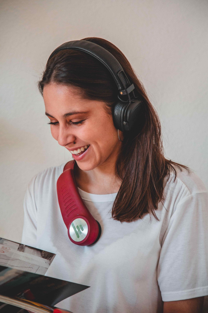 BassMe est un caisson de basses personnel qui permet de ressentir physiquement le son, différemment d’une simple écoute. Disposé sur la poitrine de ses utilisateurs, le dispositif les propulse au cœur du son, grâce à son système unique d’ondes sonores et de vibrations.