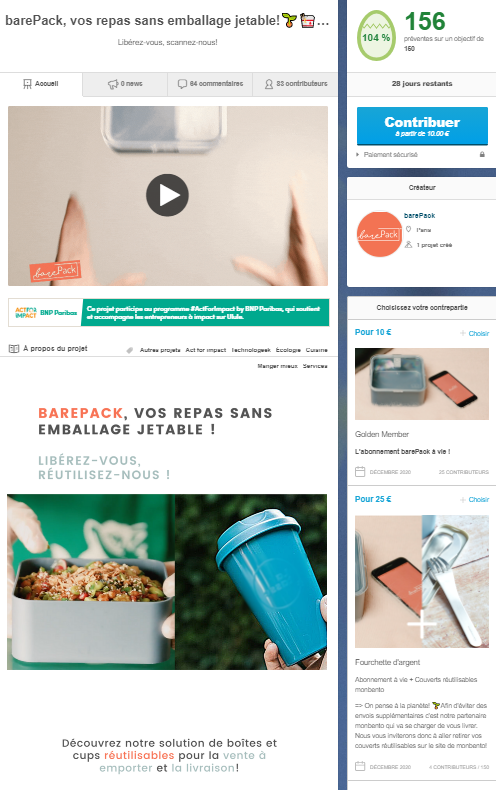 Page Ulule : https://fr.ulule.com/barepack-le-repas-sans-emballage-jetable