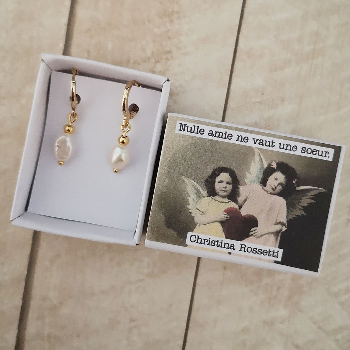 Isabelle : “J’ai adoré ce concept, les bijoux sont très beaux, l’emballage très original et les petites citations très sympas. Merci encore.”