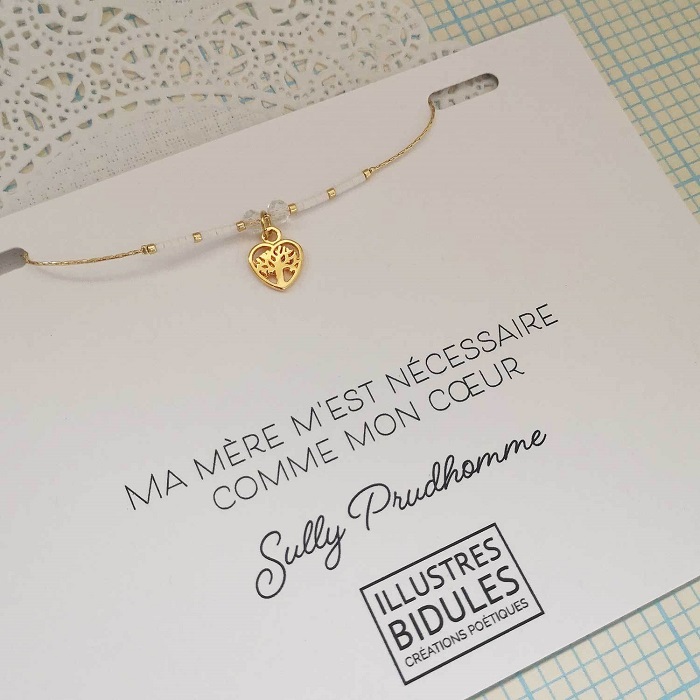 Ce bracelet est accompagné d’une belle citation de Sully Prudhomme : “Ma mère m’est nécessaire comme mon cœur.”